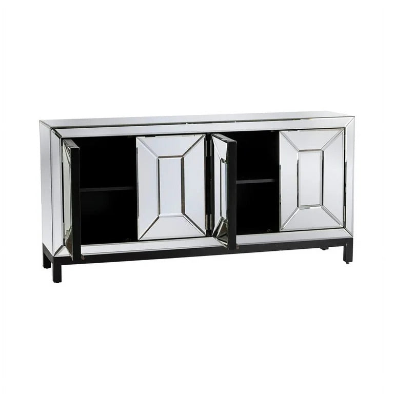 4-Door Modern Glass And Metal Beveled Mirror Picture Frame Sideboard
