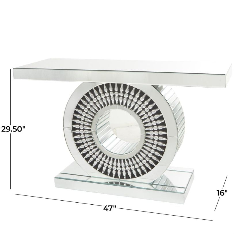 SILVER GLASS SUN MIRRORED CRYSTAL CONSOLE TABLE