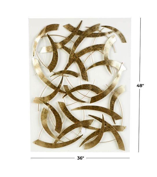 GOLD METAL ABSTRACT METALLIC WALL DECOR WITH WHITE WOOD BACKING